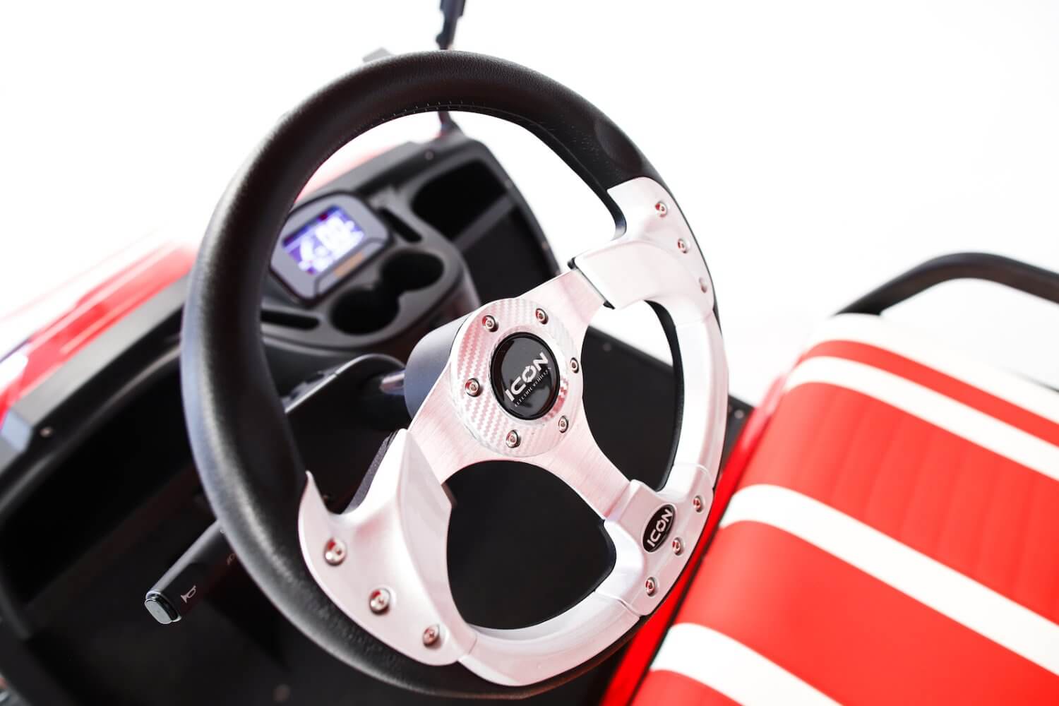 The ICON® i40L comes standard with (8) 6V Sealed Maintenance-Free AGM batteries, an upgraded 48V ICON 5KW 3 Phase High Torque motor, and a controller for ICONIC performance! Optional upgrade to 51V 105AH Eco Lithium Battery now available!