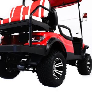 The ICON® EV i40 L is ideal for individuals and companies looking to transport friends, family, and clients in comfort & class. This lifted four-seater model is loaded with premium features like 12′′ aluminum wheels, 4-wheel disc brakes, powder-coated steel chassis, lights, turn signals, high-speed rear ends, heavy-duty forward brush guard, durable front and rear bumpers, fender flairs, painted rooftops, horns, digital gauges, and more.
