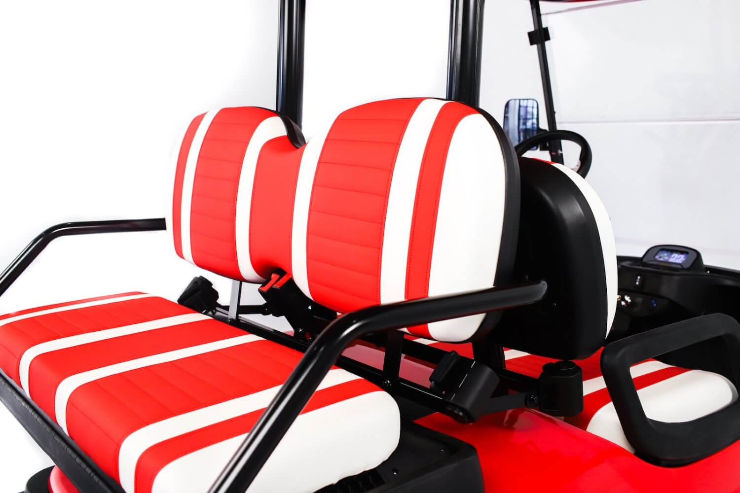 Seats: Marine Grade Vinyl, Custom Stitched Panel, Single Color, Color Matched with White or Black Accents. Fold Flat Rear Seat for Hauling