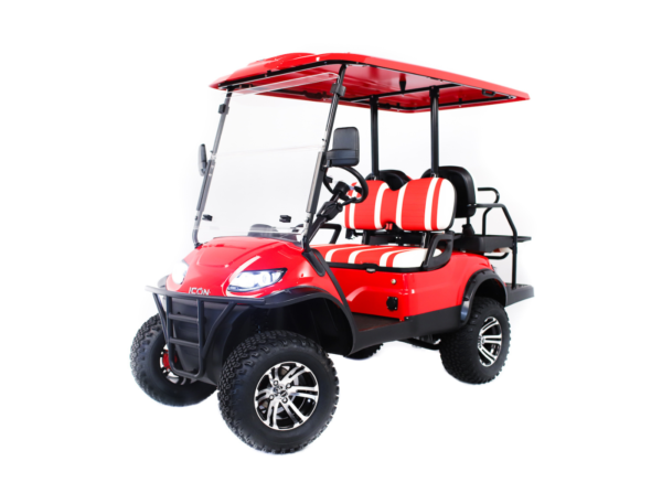 This lifted ICON® i40L four-seater golf cart stands out with style, durability and power, making it an all around winner for commercial & residential use.
